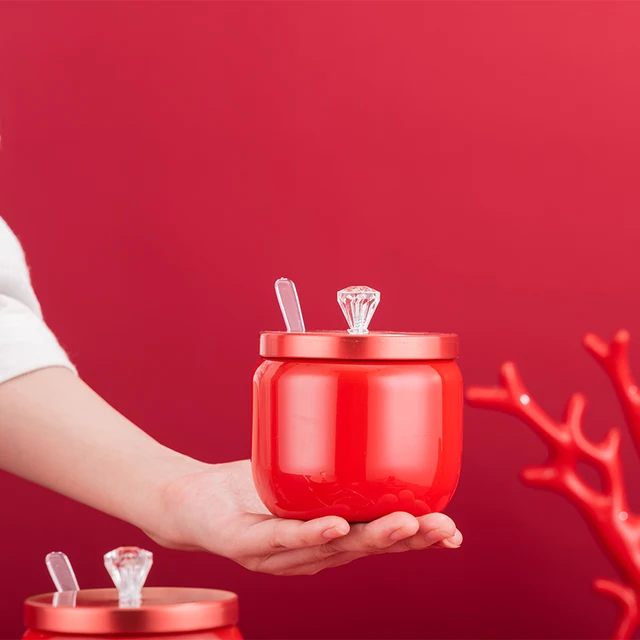 Vanilla Stainless Steel Masala Box With Spoon Sugar Jar Storage Spice Jar Kitchen Accessories Christmas Red Home Decore
